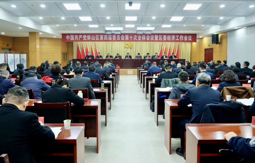 12月30日上午,中国共产党蚌埠市蚌山区第四届委员会第十次全体会议暨区委经济工作会议召开。全会由区委常委会主持。区委书记王志讲话,区委副书记、区长张圣辉就实现2026年经济发展目标作工作安排,区人大常委会主任安永民,区委委员、区委候补委员出席。