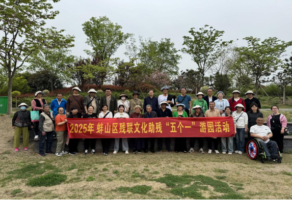 2025年4月11日上午,蚌山区残联组织残疾人及助残志愿者共40余人,前往蚌埠市江淮植物园开展文化进残疾人家庭“五个一”游园活动,让残疾人朋友亲近自然,丰富他们的精神文化生活。