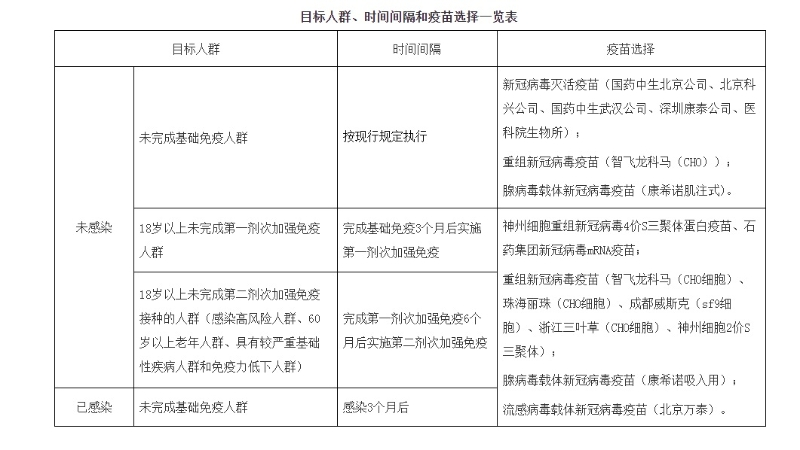 除了前期已经在使用的新冠病毒疫苗,我省又新增两个疫苗品种:神州细胞重组新冠病毒4价S三聚体蛋白疫苗和石药集团新冠病毒mRNA 疫苗,可用于18岁以上人群。考虑随时可能出现的病毒感染风险,建议符合条件的人群按照下述方案尽快完成疫苗接种。