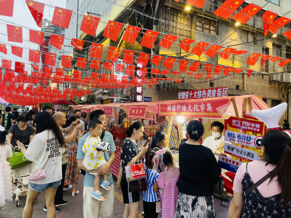 通过打造“非遗+特产+手艺区”“中秋氛围打卡区”“演艺音乐区”“文创潮玩区”以及开展民俗表演、汉服巡演等活动,进一步促进非遗文化的活态传承与创新发展,进而带动蚌山区旅游消费热潮。
