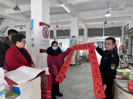市场检查送春联:蚌埠市蚌山区开展春节前“扫黄打非”专项检查宣教行动