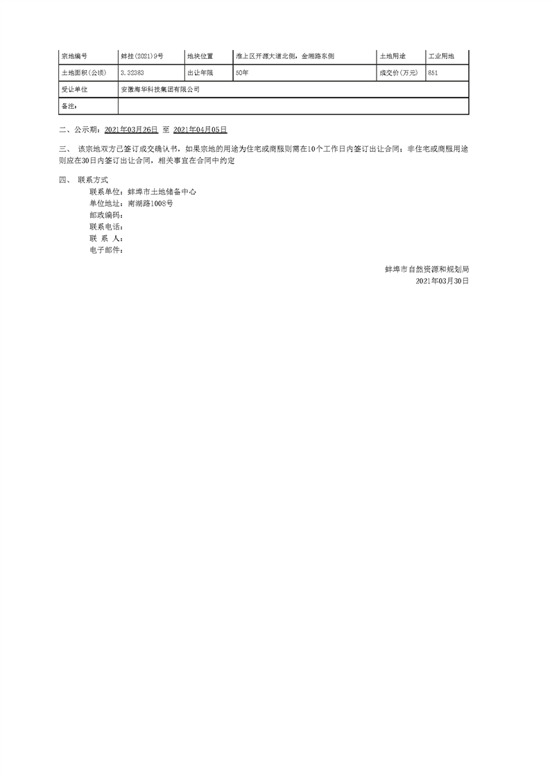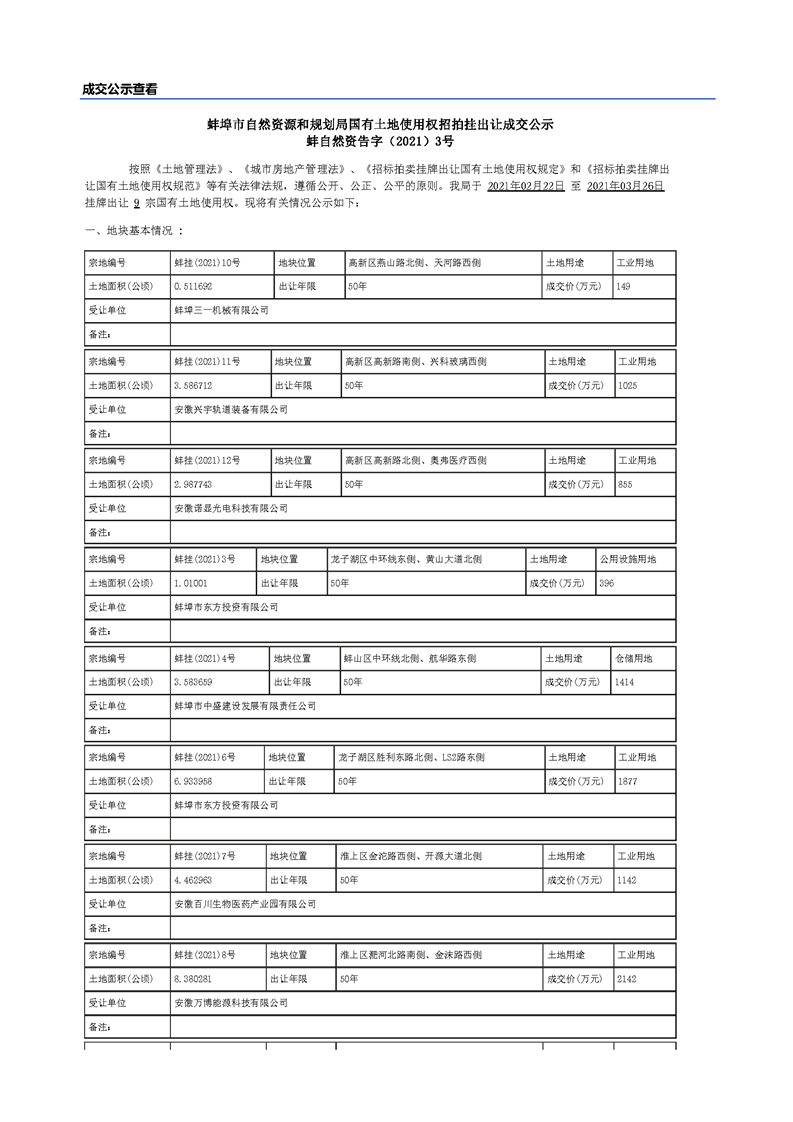 (涉及蚌山区)蚌埠市自然资源和规划局国有土地使用权招拍挂出让成交公示(蚌自然资告字(2021)3号)_蚌埠市蚌山区人民政府