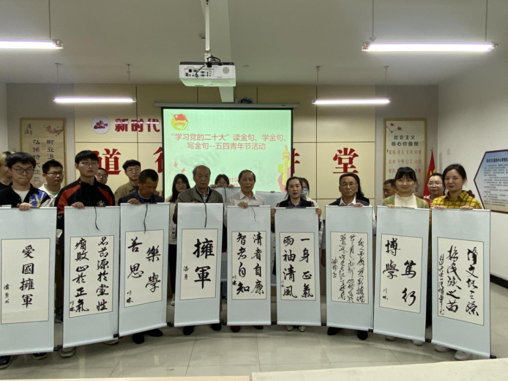 社区中心联合各社区团支部组织开展主题团日活动,读金句、学金句、写金句,引导辖区青年与时俱进,继承发扬五四精神,用实际行动践行“请党放心、强国有我”的铮铮誓言,发挥青年力量,彰显青年担当。通过“活力工程”认领文化先锋岗的党员们,带领辖区青年一起学习党的二十大报告中的金句,并用翰墨书写爱国拥军、护苗、廉政警示教育诗句,让大家在欣赏书法艺术的同时,读金句、学金句、悟金句,团员青年坚定了听党话、跟党走的信心和决心,承诺用奋斗擦亮青春底色,以实际行动践行使命担当。